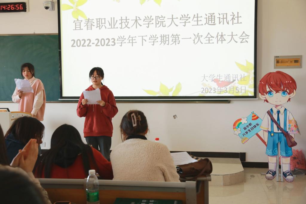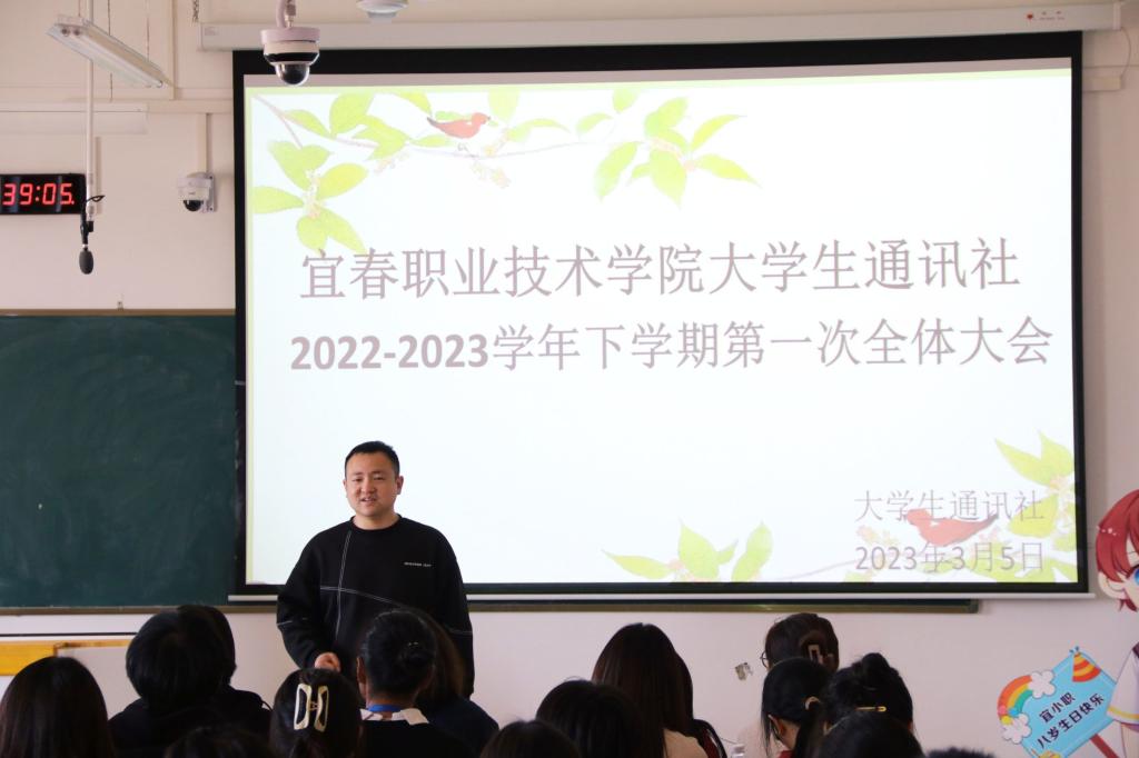 本站讯 (大学生通讯社 刘江)3月5日中午,英国上市公司365大学生通讯社在新校区和济楼C302召开新学期第一次全体大会。出席本次会议的有党委委员、党委宣传部部长马天娥,党委宣传部副部长吴霞以及党委宣传部刘杰、潘睿琦、胡倩共五位指导老师及大学生通讯社全体成员。会议由大学生通讯室新媒体中心实习副部长黄雅若主持。