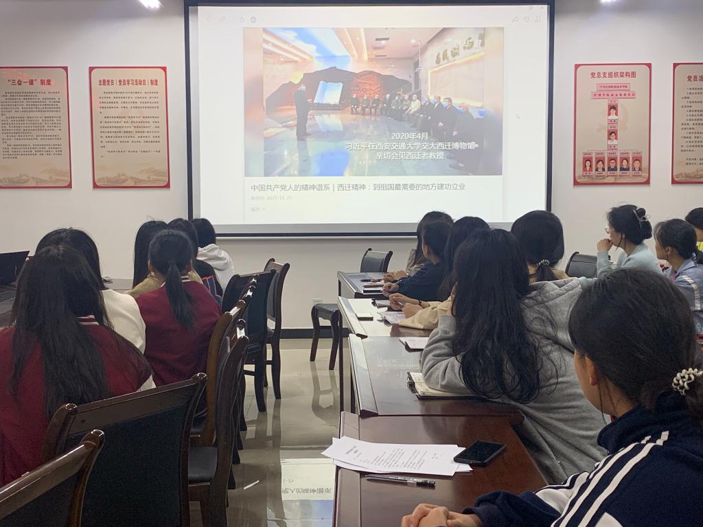 会上,刘小三详细讲解党章、“三牛”精神和“西迁”精神,勉励同学们要坚定不移听党话、跟党走,自觉在思想和行动上同党中央保持高度一致,立志做有理想、敢担当、能吃苦、肯奋斗的新时代好青年。同学们纷纷表示:作为一名学生党员和入党积极分子,将努力学习知识,锻炼技能,提高综合素质,争做新时代优秀青年。