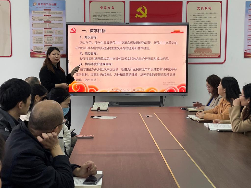 本站讯(马克思主义学院 卢凯)为深入学习贯彻党的二十大精神,进一步深化思政课问题式专题化团队教学改革,落实学校“三比三争”工作要求,不断提升思政课教学质量,3月30日下午,马克思主义学院在日新楼C402召开《毛泽东思想和中国特色社会主义理论体系概论》《习近平新时代中国特色社会主义思想概论》课集体备课会。会议由教研室主任张正芳主持,全体任课教师参加。