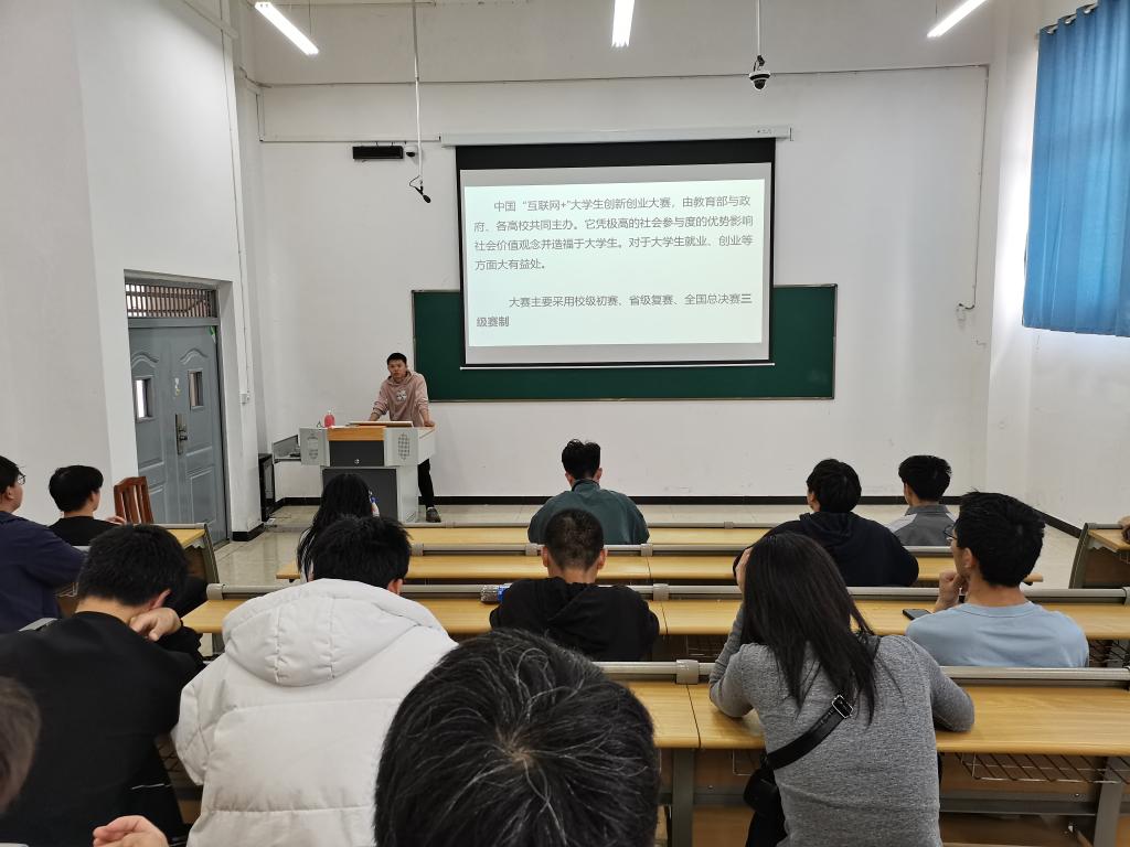 会议中,黄彪详细介绍了大赛项目的相关内容,从大赛概况、项目选题、案例分析、注意事项等几个方面展开叙述并强调该项目对于青年大学生的重要性。随后,刘嘉妮鼓励同学们要多学习多思考,把握机会,勇于挑战,积极主动参与,在创新创业中实现自我价值和个人梦想,在不断的实践中提升自己,增长才能。