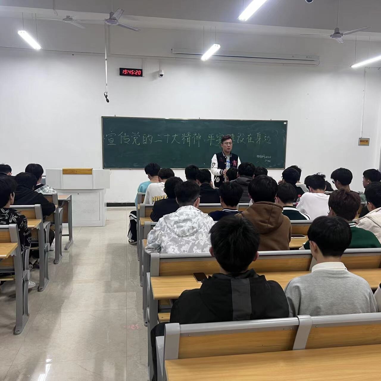 本站讯(信息工程学院 谢小欣)为进一步宣传党的二十大精神,学习贯彻习近平法治思想,引导同学们强化法治意识,营造校园平安建设良好氛围,4月9日晚,信息工程学院组织各班级开展了以“宣传党的二十大精神 平安建设在身边”为主题的班会活动。