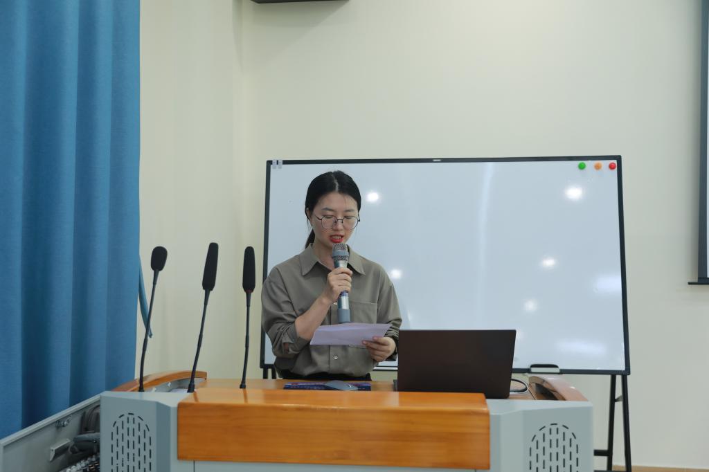 仪式上,心理健康教育中心主任席梦婷推荐好书,资助中心副主任陈雪莲宣读活动方案。