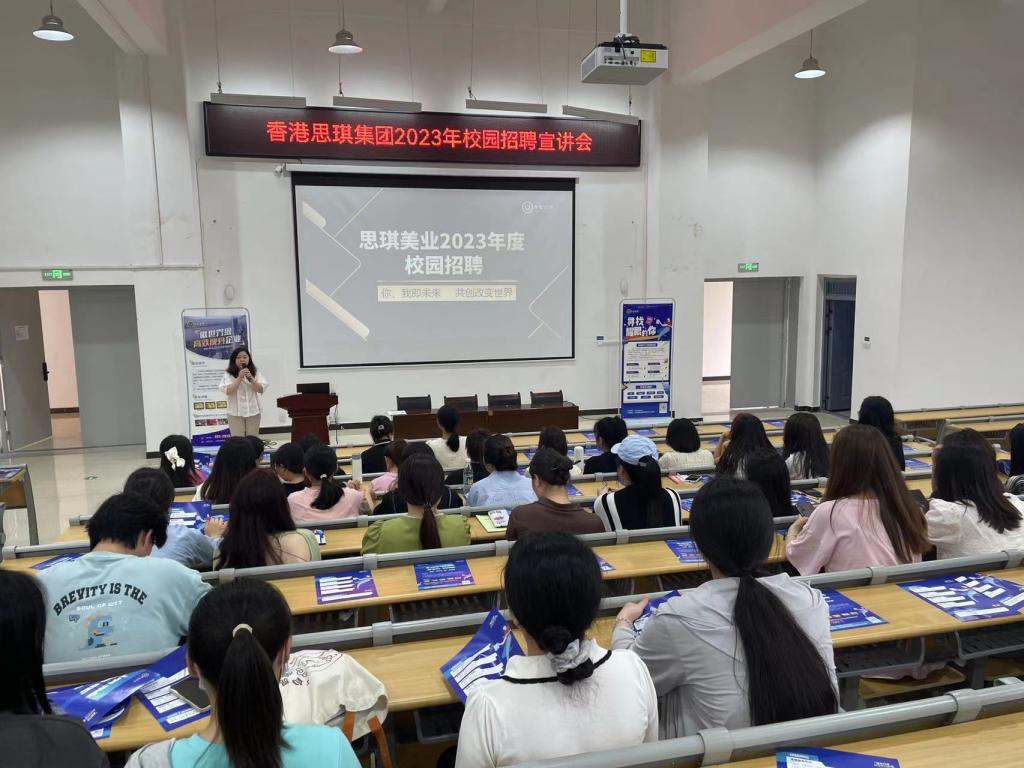 宣讲会上,香港思琪集团负责人向毕业生详细介绍企业愿景使命、文化价值观、核心团队力量、产品研发生产、管理服务模式、招聘岗位、薪资待遇及发展前景等。毕业生认真倾听,并积极与集团负责人进行交流互动,现场气氛活跃。