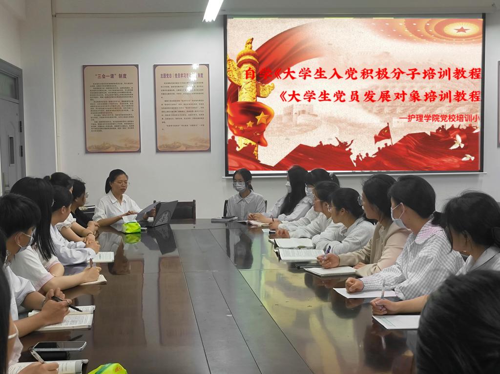 本站讯(护理学院 赖梦婷 罗佳钰)为深入学习贯彻党的二十大精神,引导大学生深入了解党的性质宗旨,5月20、21日,护理学院在和济楼C117进行为期两天的党校培训分组学习,23名发展对象和入党积极分子参加。