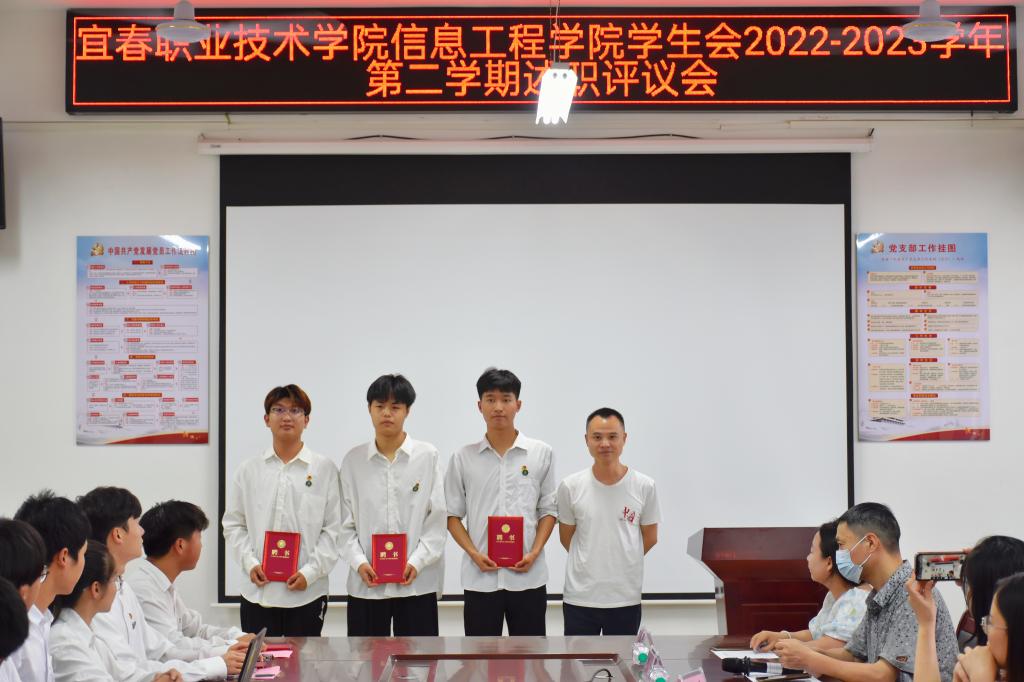 本站讯(信息工程学院 黄彪 刘嘉妮 学生记者 张开泰)为进一步加强学生会组织建设,提高学生会干部责任意识、服务意识和大局意识,6月11日,信息工程学院在智云楼B501开展2022—2023学年第二学期学生会述职评议会。党总支书记罗来曦、副书记陈小保、团总支书记刘嘉妮、学工辅导员代表谢小欣、易文意出席此次会议。