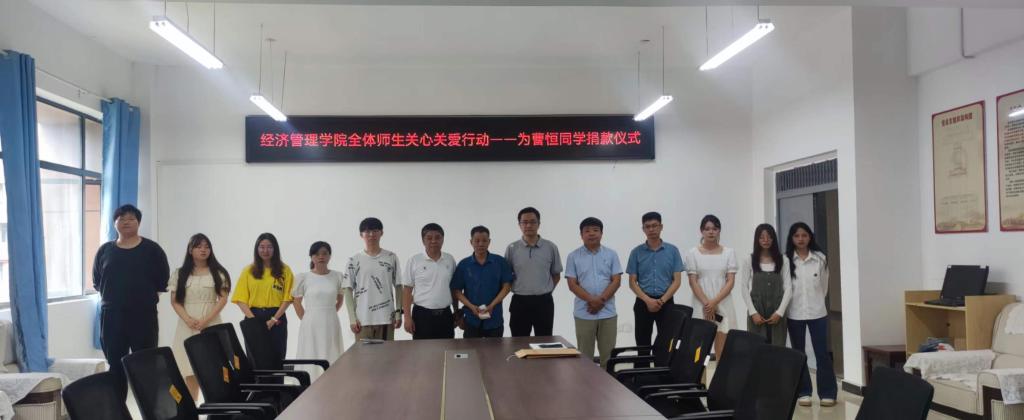 本站讯(经济管理学院 樊鸿儒)为帮助经济管理学院电子商务21301班曹恒同学渡过难关,弘扬大爱无疆助人精神,传递社会正能量,6月13日上午,经济管理学院在博达楼A303举行善款捐赠仪式。