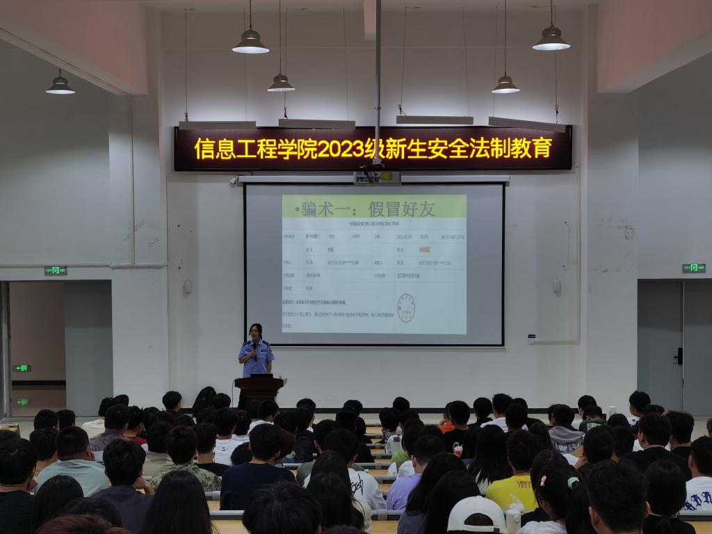 本站讯(信息工程学院 李纪杨)为提高学生的安全与法治意识,丰富学生的法律知识,增强学生的自我保护能力,9月15日上午,信息工程学院在和济楼C126阶梯教室开展2023级新生安全法制教育活动,活动由院长简靖韡主持,并邀请学院派出所陈娟警官作分享。