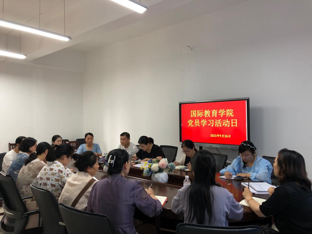本站讯(国际教育学院 刘洋倩)9月26日下午,国际教育学院党总支在博达楼B501室召开9月党日活动暨学习贯彻习近平新时代中国特色社会主义思想主题教育动员大会。会议由院长王玮主持,全体党员参加。