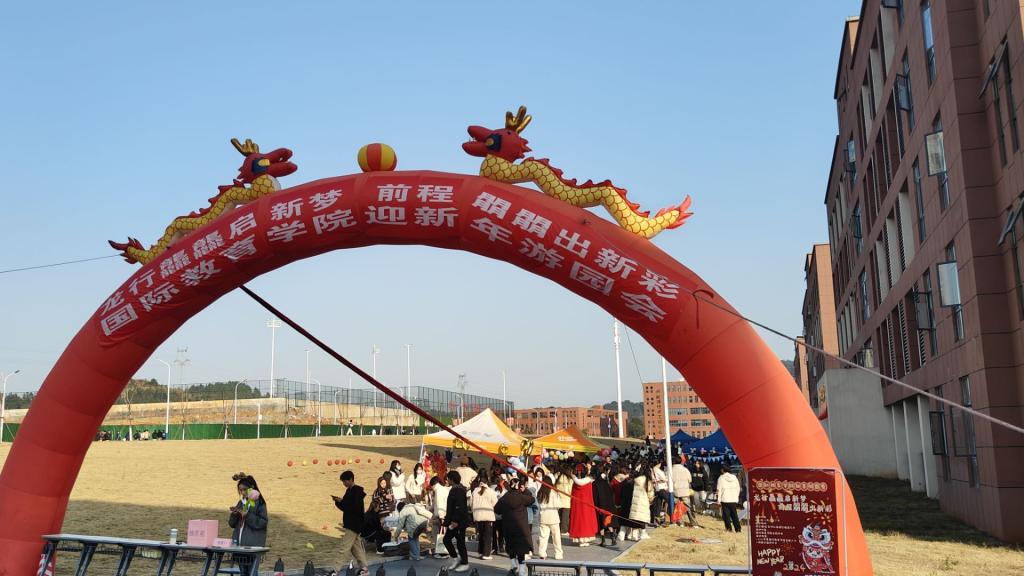 本站讯(国际教育学院 彭娟)岁序更替,华章日新,为让在校师生感受浓浓的年味,丰富大学生的课余生活,展现社团风采,共迎新年新气象,12月27日下午,国际教育学院在博达楼B区开展新春游园会活动。刘江毅副校长也来到游园会与同学们一起感受欢乐氛围。