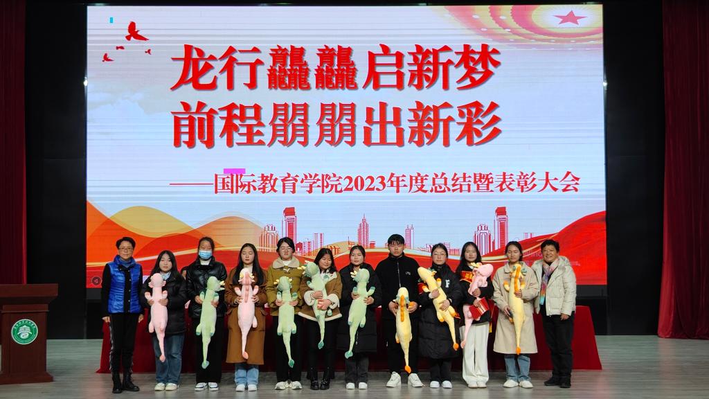 本站讯(国际教育学院 彭娟 学生记者 周熙睿)为表彰优秀,鼓励先进,树立典型,营造浓厚的学习氛围,进一步引导全体师生积极性和主动性,12月27日下午,国际教育学院在博达楼演艺厅召开2023年度表彰大会,副校长刘江毅,学工处处长谢海英,院领导班子及学院全体师生参加。会议由院长王玮主持。