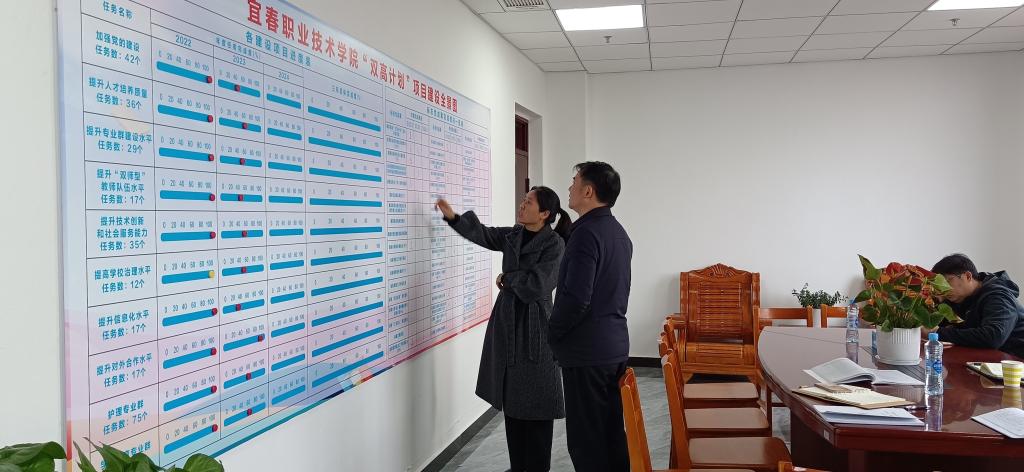 本站讯(监督检查室 郑立波)为深入推进学校“双高计划”项目建设各项任务落实,确保顺利通过验收,学校纪委主动作为、靠前监督切实发挥监督保障执纪作用。近日,学校纪委书记刘平涯、监督检查室主任包刚等人来到发展规划处就“双高计划”项目建设推进情况进行督导调研。现场查看“双高计划”挂图作战情况、听取汇报详细了解各项目建设进度、建设难点等,针对“双高”工作中的不足和短板给出了指导意见。