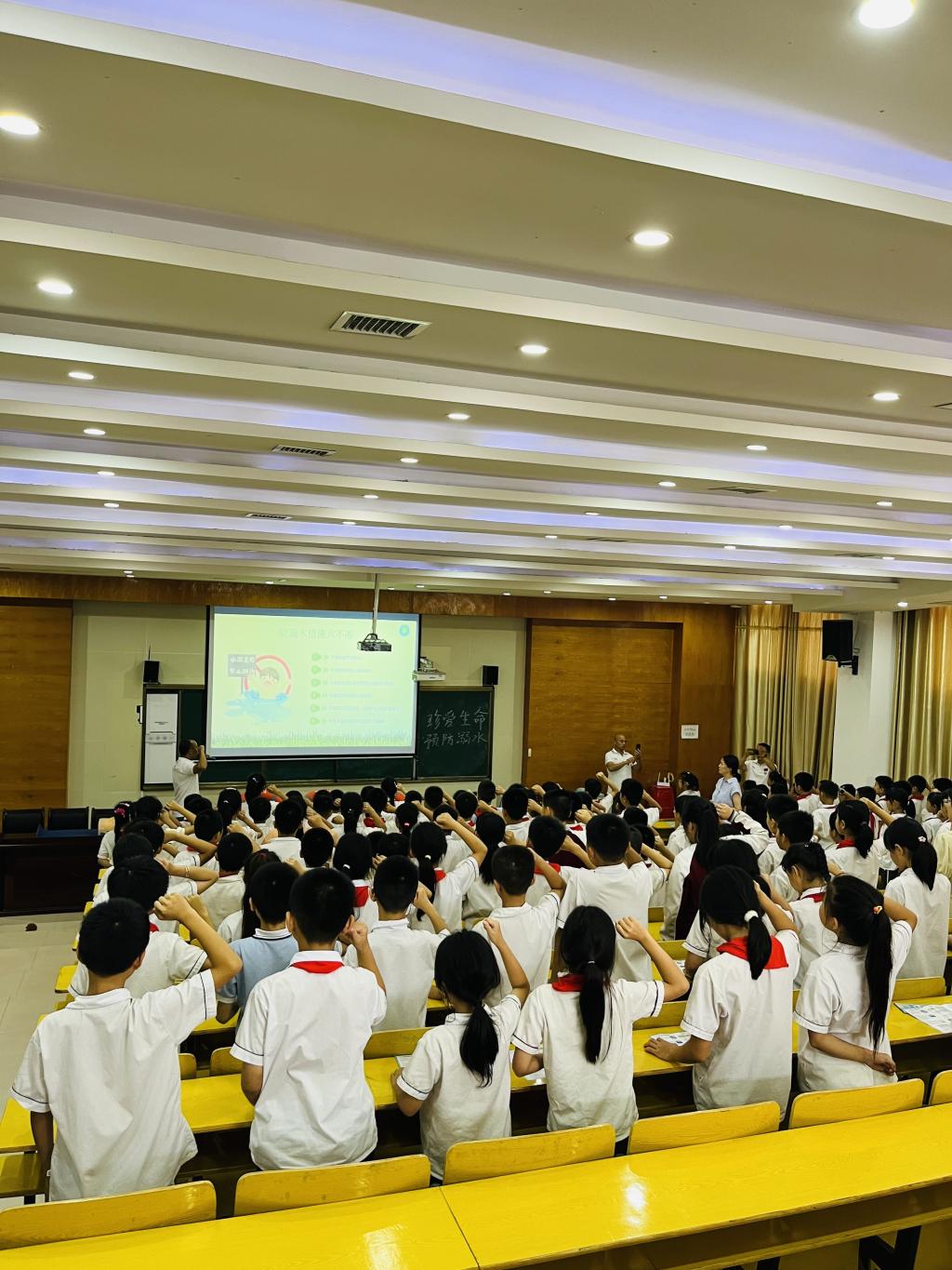 江西省游泳救生协会公益防溺水讲师给师生讲授了内容全面、丰富的防溺水安全知识。讲师在现场演示CPR心肺复苏操作方法,并让学生们亲身实操,学习施救落水者的方法和技巧。最后,讲师带领参与活动的全体学生庄严宣誓,教育孩子们牢记防溺水“六不准”,做到珍爱生命,预防溺水。