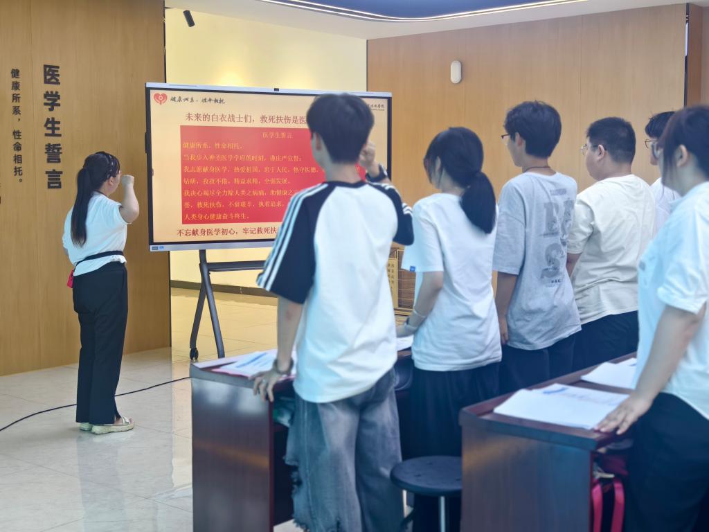 本站讯(医学基础部 尹史帝)为落实立德树人根本要求,践行“三全育人”教育理念,9月19日,医学基础部党支部将主题党日活动与医学生新生班级“开学第一课”结合,在生命与健康科学馆内开展了一场意义非凡的“感恩、立志、奋进--医学生开学第一课”主题党日活动。兄弟党支部同志到场观摩。