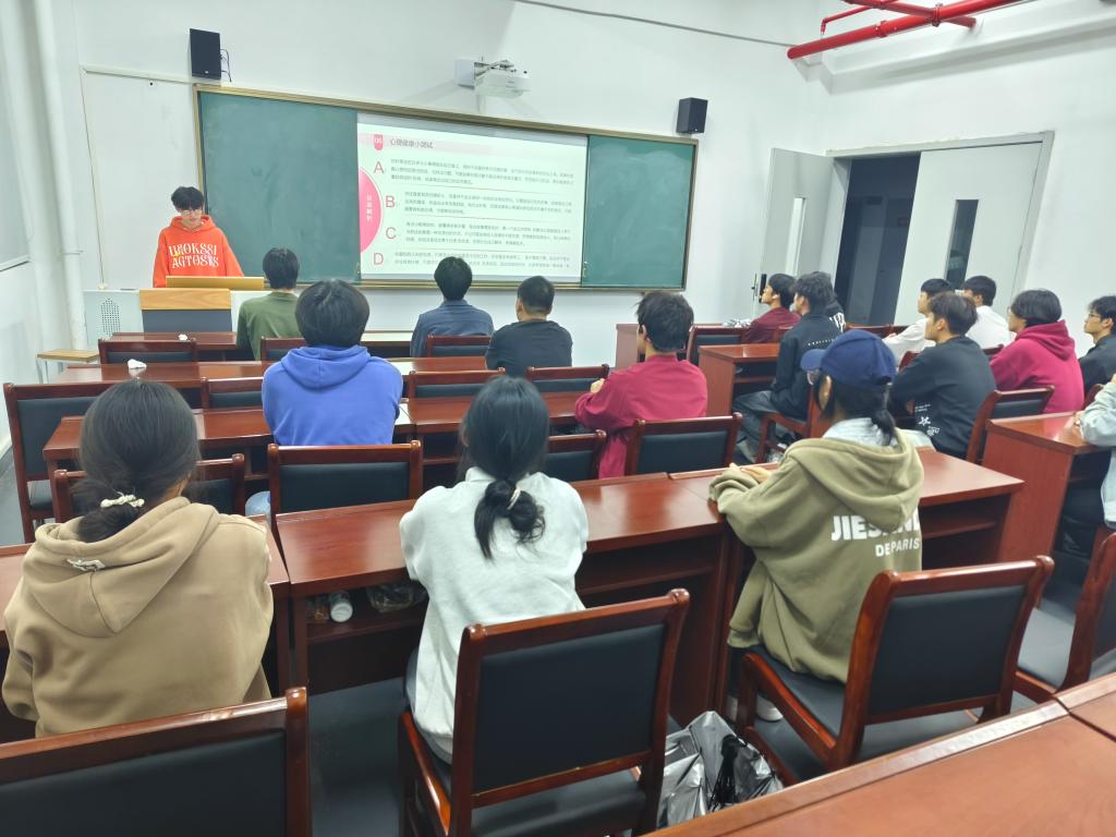 本站讯(机电与新能源汽车学院 欧阳健林 学生记者 傅宇强)11月18日晚,机电与新能源汽车学院心理委员工作室在新能源技术工程中心502组织开展心理健康基础知识分享会,此次活动由机电心委室副室长孙宇担任主讲人,吸引了众多心理委员参与。