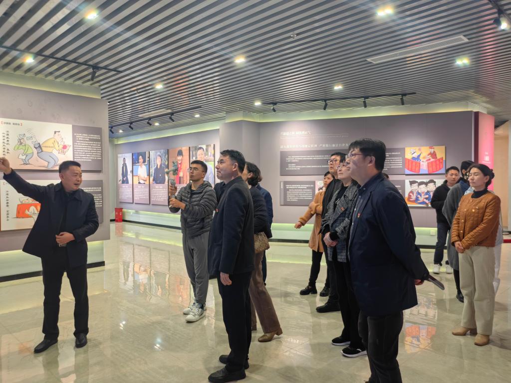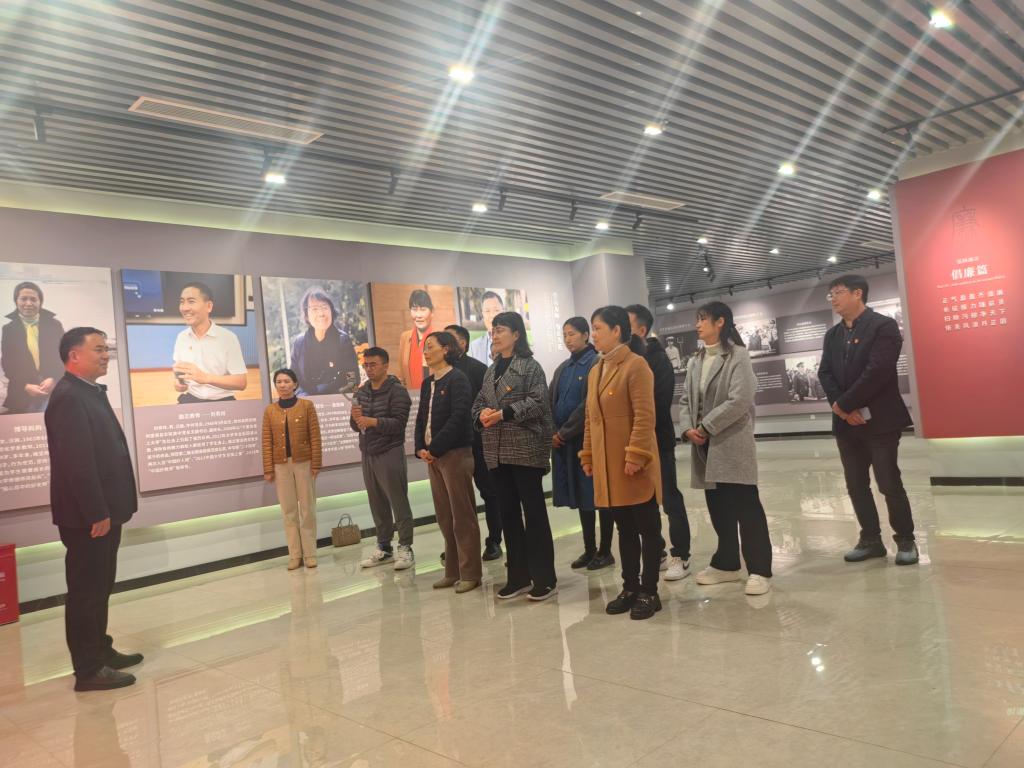 宜春学院纪委副书记涂以辉带领全体党员参观廉政教育展区。涂书记详细介绍了展区内的每一个部分,从历史案例到现代反腐成果,深入浅出地讲解廉洁建设的重要性和对社会发展的深远影响,激发大家对廉政文化的认同感。