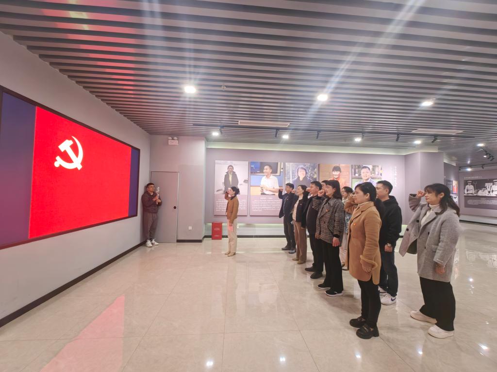 在组织委员郑立波同志的带领下,全体党员面对党旗庄严宣誓,重温入党誓词,表达了全体党员不忘初心、牢记使命的决心。