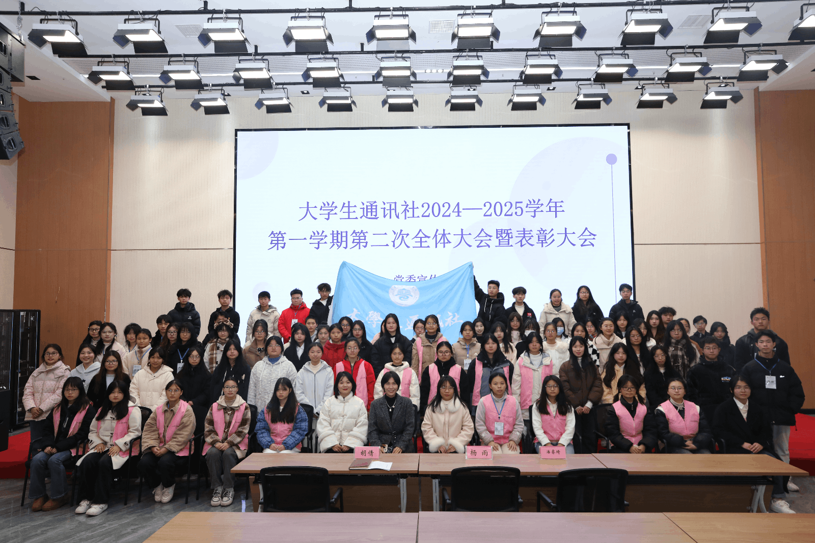 本站讯(大学生通讯社 黄婉晴)12月18日,校大学生通讯社在天工楼四楼学术报告厅召开2024年度年终总结暨表彰大会。党委宣传部副部长杨雨、宣传科负责人潘睿琦以及大通社指导老师胡倩出席,大通社全体成员参会。大会由社长林燕主持。