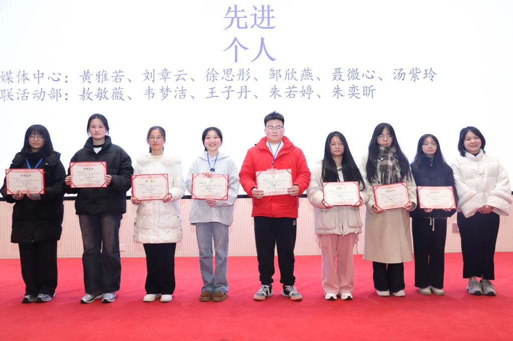 会上,主席团及各部门代表从部门基本情况、2024年工作总结以及工作反思与未来展望三个方面作工作汇报。各部门代表通过实际案例、具体数字介绍了大通社在新闻报道、活动组织、团队建设等多个方面的亮点与显著成就,也指出了当前存在的新闻报道的时效性有待提高、活动组织的协调性和执行力等问题与不足之处。新成员代表黄静灵、施梦林分享了在大通社工作的成长与收获。大会还对年度优秀骨干和先进个人进行了表彰。