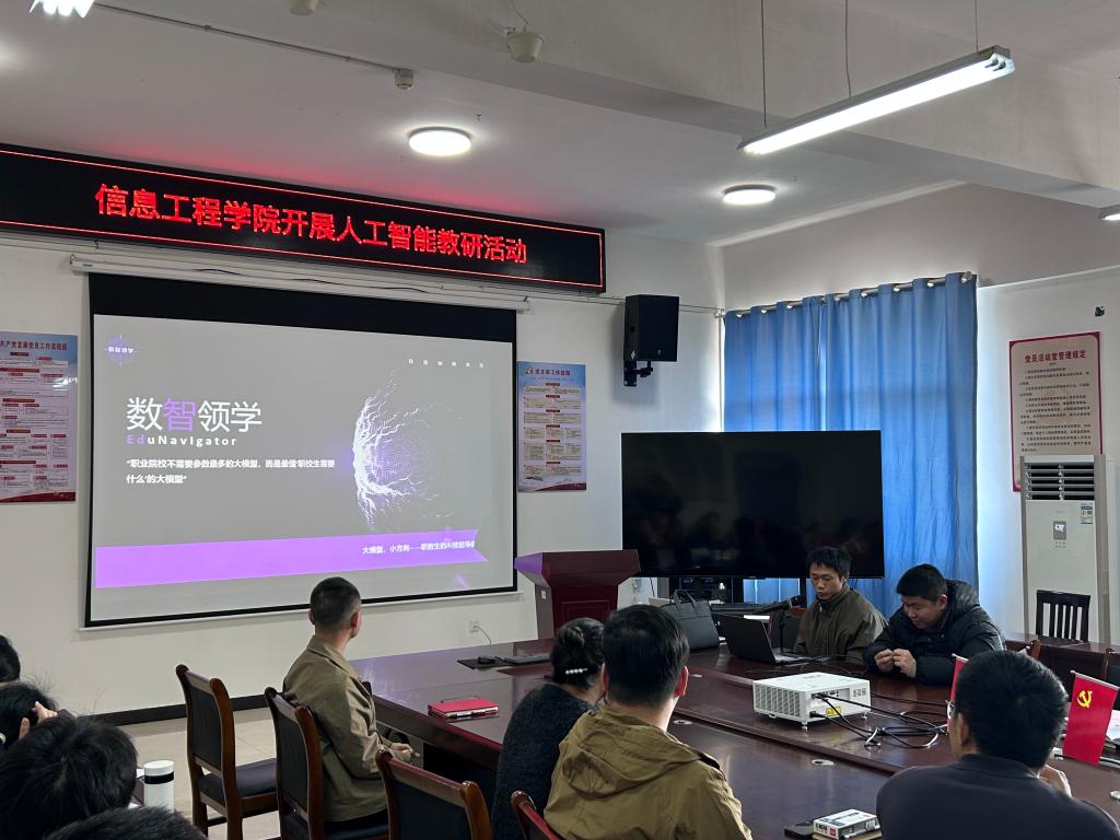 本站讯(信息工程学院 王乐)为提升全院教职工人工智能技术开发应用能力,3月19日下午,信息工程学院在智云楼B501开展大学生人工智能教研活动,曾泽宇老师及计应23302班赵亮同学担任主讲,学院全体教职工参加。