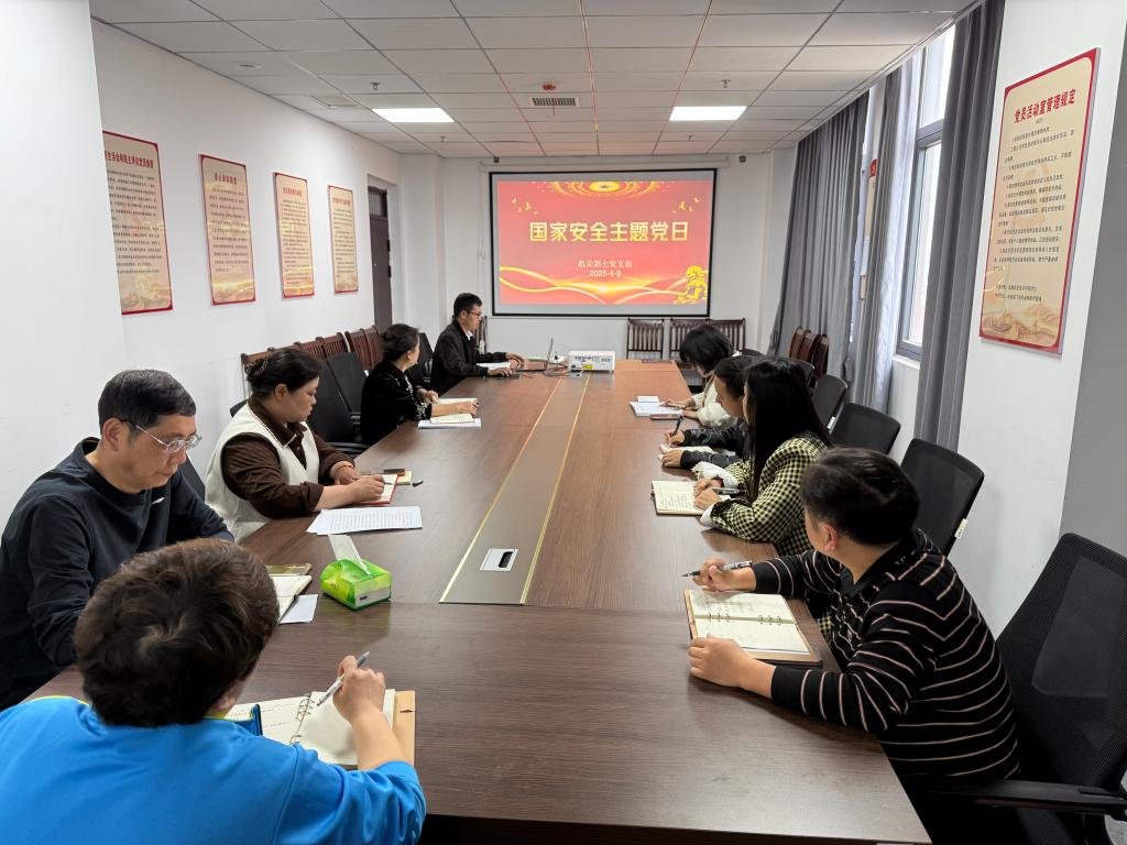 本站讯(机关第七党支部 林先梅)为全面贯彻落实习近平总书记关于加强国家安全教育的重要指示批示精神,进一步筑牢党员的国家安全思想防线,强化责任担当意识,4月9日,机关第七党支部在天工楼A806会议室精心组织开展以“国家安全,人人有责”为主题的专题党日活动。