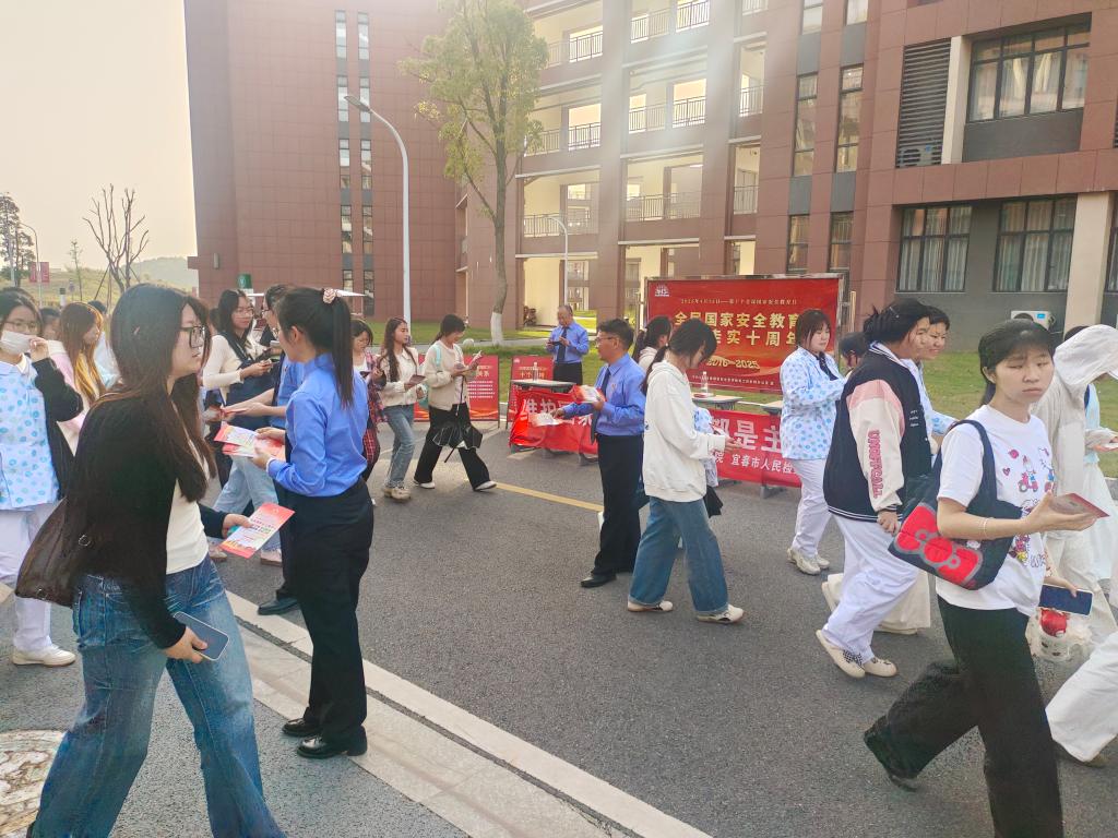 活动中,检察官彭维娜以《清澈的爱只为中国——全面贯彻落实总体国家安全观》为题开展专题讲座,通过“为什么要坚持总体国家安全观”“如何构建统筹各领域安全的新安全格局”“怎样推进国家安全体系和能力现代化”三个方面系统阐释总体国家安全观的核心要义与时代价值,引导师生理解国家安全与个人发展的共生关系。讲座结束后,检察干警与师生展开互动,通过海报警示、手册解读、现场答疑等形式,普及国家安全法、反间谍法、网络安全法等法律法规,并围绕反诈、反邪教、保密等热点问题现场答疑,进一步提升了师生的风险防范能力。