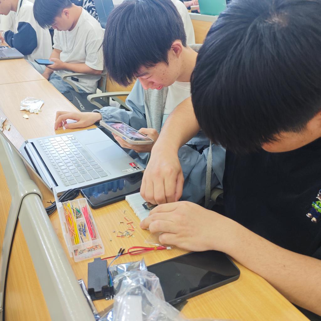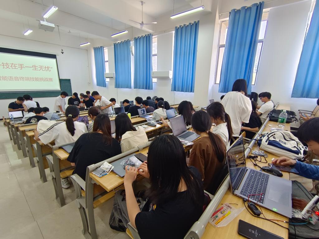 本次竞赛要求选手在90 分钟内完成AI智能机器人的硬件组装、系统配置、AI语音交互功能适配三项核心任务。比赛现场,参赛学生按照流程,精准运用模拟电路、C语言编程、嵌入式系统开发等课程知识有序操作。赛后,获奖同学表示“在组装过程中遇到电路短路问题,通过排查电路图得到了解决,这个过程让我深刻体会到‘纸上得来终觉浅‘,只有反复实操才能真正掌握技术精髓。”