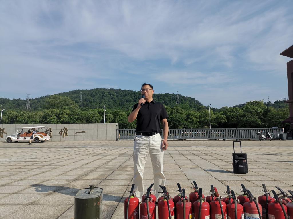 演练结束后,党支部在开物广场开展消防技能实操培训。消防专家胡庐卫老师现场指导灭火器实操,参训人员分组进行油盆灭火演练,党员带头示范操作规范,确保人人掌握“提、拔、握、压”四步灭火法。