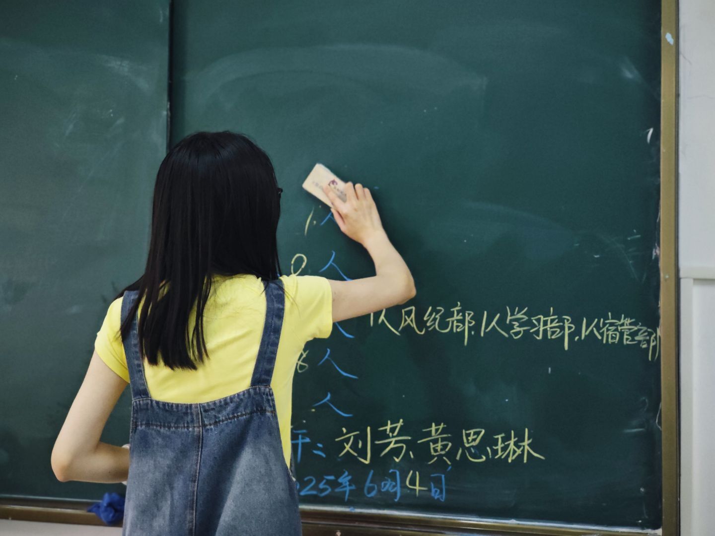 6月5日,艺术与设计学院组织党校培训发展对象及入党积极分子到博达楼小礼堂开展“美化礼堂环境 共享整洁空间” 专项打扫行动。参与者按区域被划分为三组,各设组长统筹协调。在负责人的统一调度下,小组成员迅速投入工作,有的专注擦拭座椅积灰,有的细致清扫地面杂物,有的深入舞台后台清理卫生死角。扫帚挥动、抹布擦拭的声音交织,勾勒出齐心协力的劳动画面。