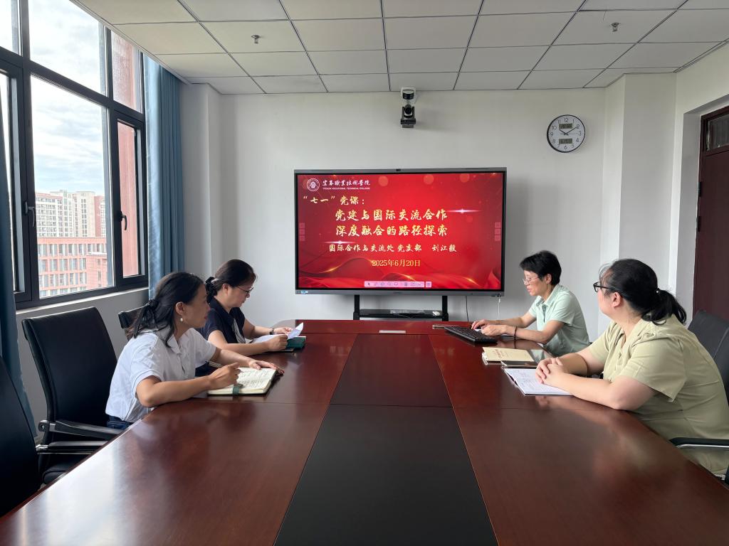 本站讯(国际合作与交流处党支部 杨慧)6月20日,党委委员、副校长刘江毅在天工楼C704为国际合作与交流处党支部讲授专题党课。