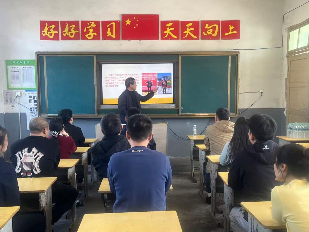 党员们来到小洞小学,慰问“全国先进工作者”陈江山老师。座谈中,大家详细了解他四十一年扎根山村、投身教育的事迹。随后,陈江山以《红土地上的传承与守望》为题讲授党课,结合亲身经历,用鲜活案例和深情讲述,阐释了红色精神在新时代的内涵与价值。