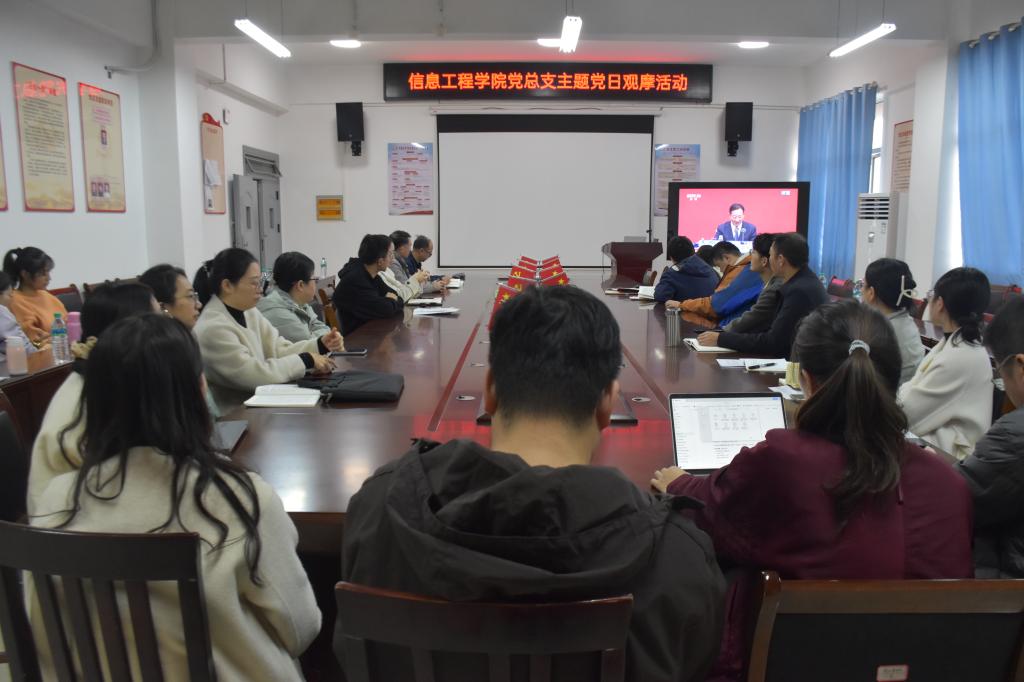 本站讯(信息工程学院 易文意)为筑牢党员思想根基,推动党建与业务深度融合,11月18日下午,信息工程学院党总支在智云楼B501党员活动室开展了主题党日观摩活动,校纪委书记刘平涯及学校各基层党组织代表到场观摩指导。