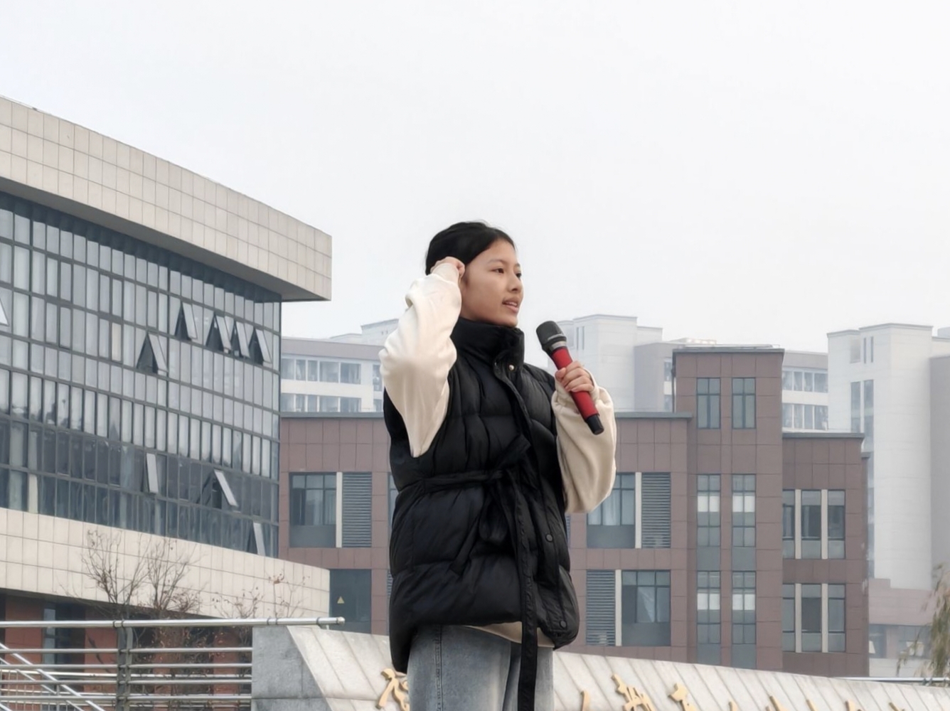 在全体师生的注目礼下,五星红旗伴随着国歌冉冉升起。院党总支书记邹晓英作国旗下的讲话,号召广大学子争做有信仰、有担当的新时代青年,把自己的人生梦想同国家的命脉发展紧密结合,为中华民族的伟大复兴挥洒青春与汗水。学生代表邹娇在发言中表示,将不忘初心,树立远大理想,以实际行动践行“青春奋进报国行”的承诺。