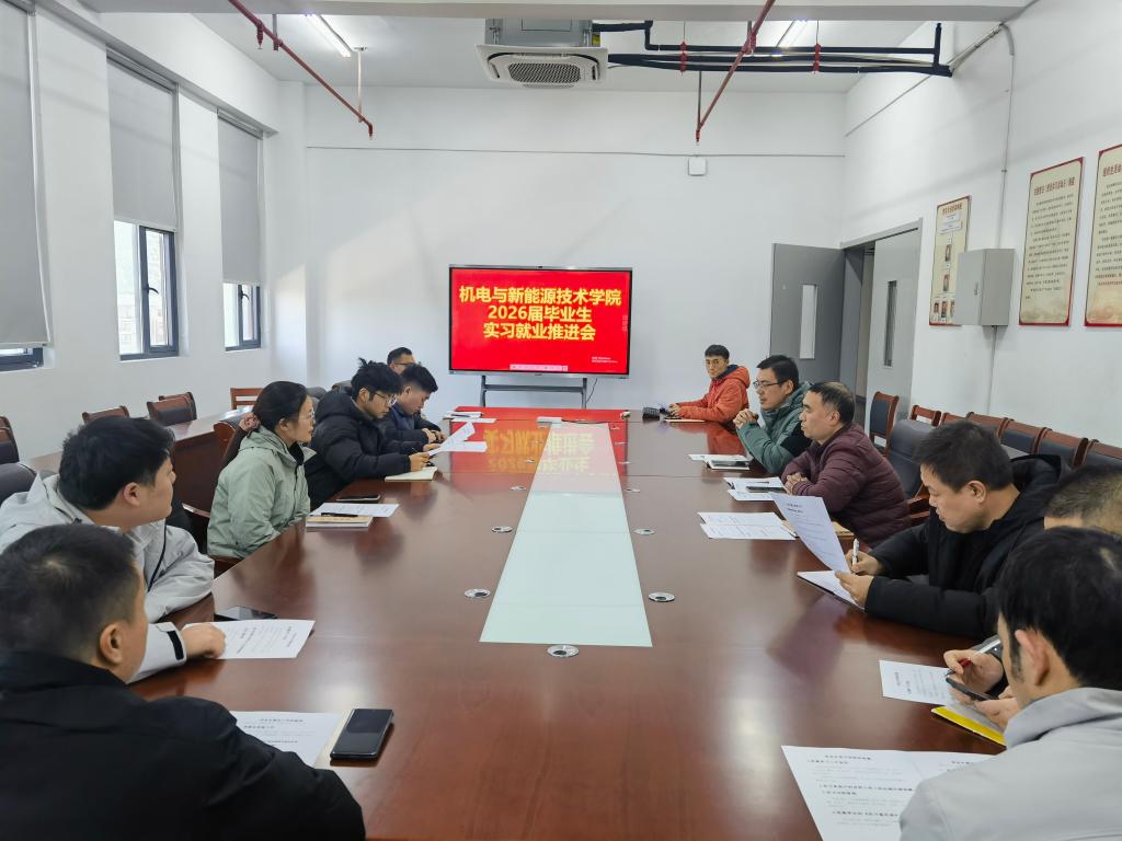 本站讯(机电与新能源汽车学院 杨张海)1月8日,机电与新能源汽车学院在新能源楼508室召开2026届就业工作推进会。院长吴东平主持会议。党总支副书记周勤,就业负责人彭卫发、杨张海及2026届毕业班全体班主任参会。
