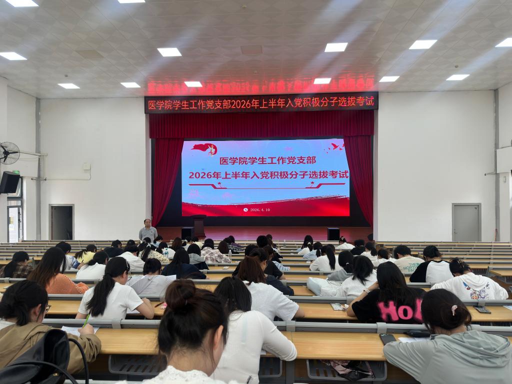 本站讯(医学院 刘倩)为严格党员发展程序,夯实党建工作基础,切实把好党员入口关,深入落实党建带团建工作要求,充分发挥团组织育人桥梁作用,4月10日,医学院学生工作党支部顺利举行入党积极分子选拔考试,切实推动党员发展工作规范化、制度化开展。