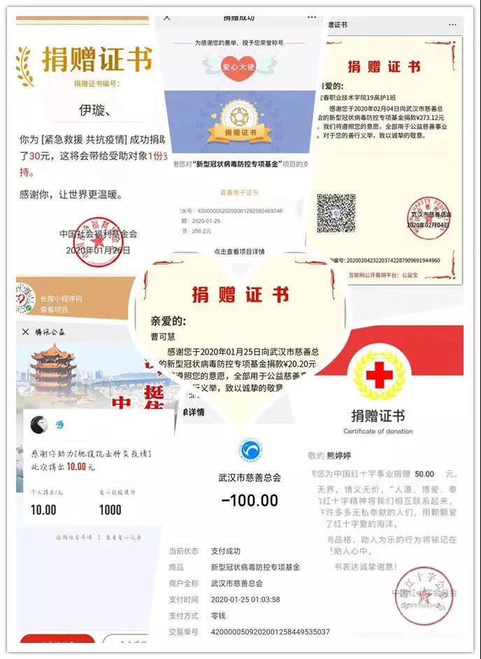 来自农村且还未走上工作岗位的学子们经济并不宽裕,19高护1班、3班学子;19大护3班朱梦瑶、18大护1班陈曦、18大助2班熊婷婷、19大护5班王地萍……学子们毫不犹豫地捐出自己的零花钱、卖画赚来或打工赚来的生活费。