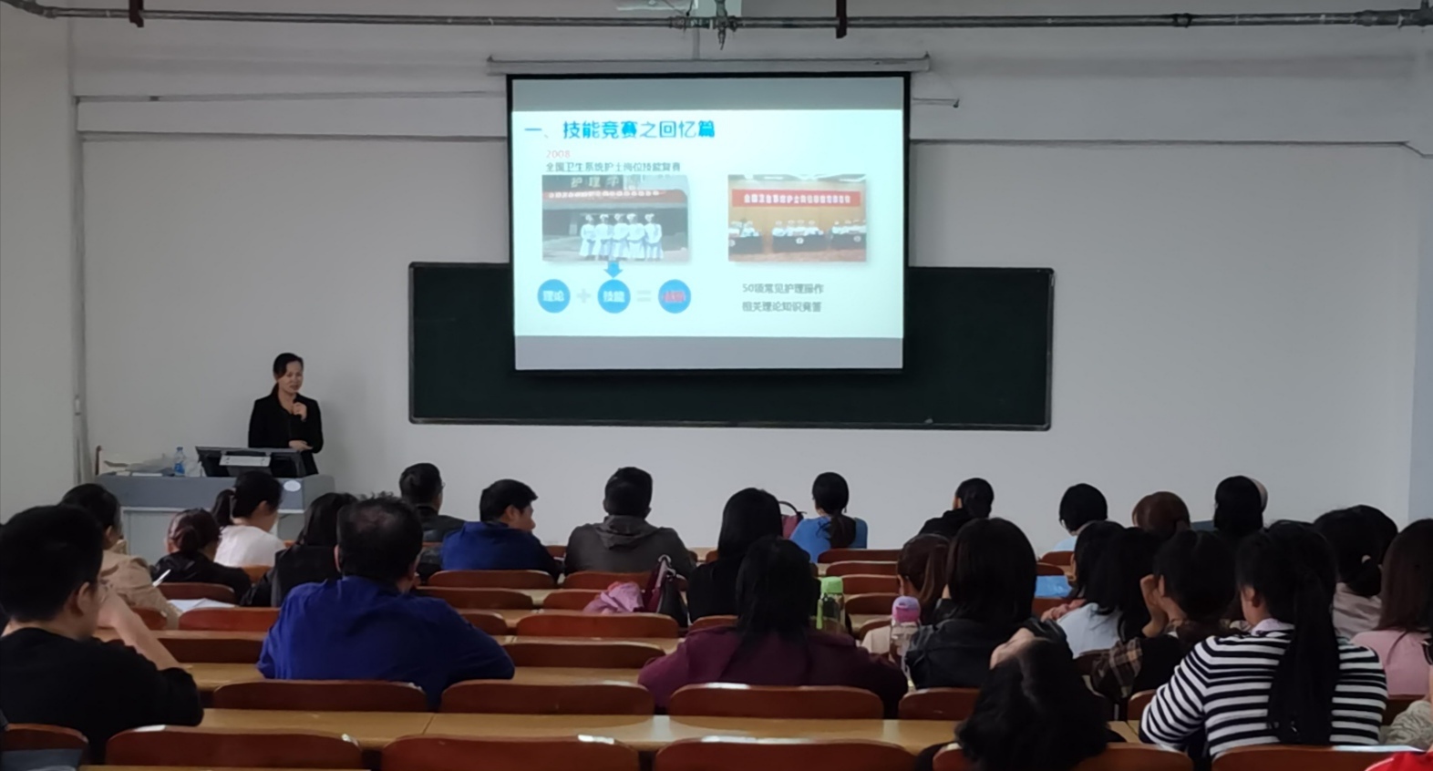 熊柱凤在讲座过程中结合自身丰富的比赛经验,引用大量的临床案例,生动、形象、幽默的讲述了“什么是临床思维”、“怎样培养学生的临床思维”,并提出可以通过“重视人文关怀,改善服务质量”、“树牢整理护理理念,尊重人的整体性”、“构建双技能并重的培训考核模式”等方式培养护生临床思维,提升护理人才培养质量。