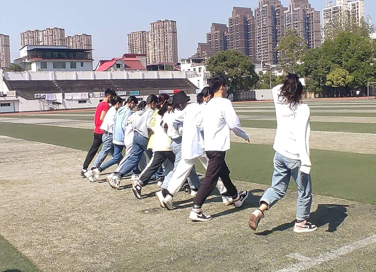 本站讯(财会金融学院 邹涛 学生记者 刘凤)秋风明月,十月于你,新生的到来为财会金融学院注入了新的活力。为了促进同学们彼此认识,拉近彼此的距离。10月12日,财会金融学院2020级大专班一百多名新生在田径场开展班级拓展活动。