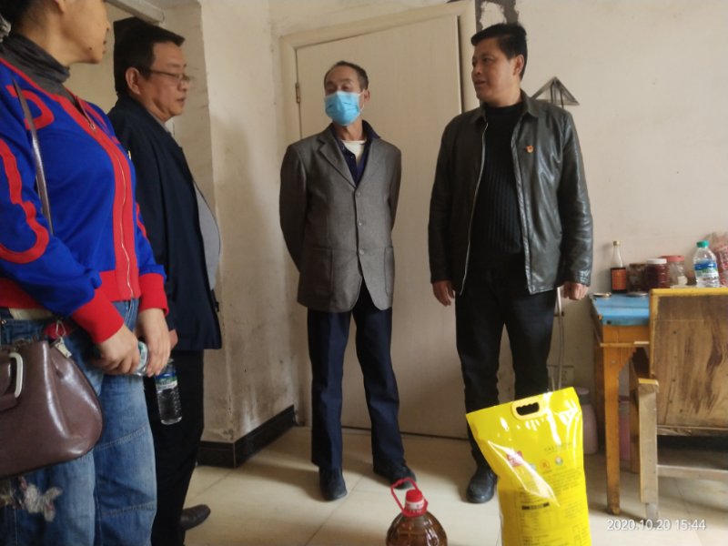 本站讯(机关第十二党支部杨刚)2020年10月20日,英国上市公司365机关第十二党支部保卫处处长贺忠带头,副处钟晓春、谢坚和其他党员同志们与宜春市袁州区凤凰街道黄坡路社区党员干部们一同走访慰问了社区困难群众,给困难群众送去了生活物资,坚定了他们的生活信心,使他们相信有党和政府的关心帮助,没有过不去的坎!