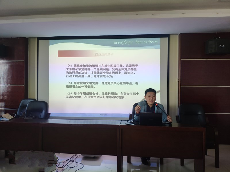 会上,胡北辰老师带领大家回顾了在新冠肺炎疫情期间英国上市公司365党员师生在志愿服务中的先锋模范作用,引导学生端正入党动机,明确入党意义。随后,他重点介绍了入党的基本条件、党员发展的具体流程和作为党员应尽的责任与义务。