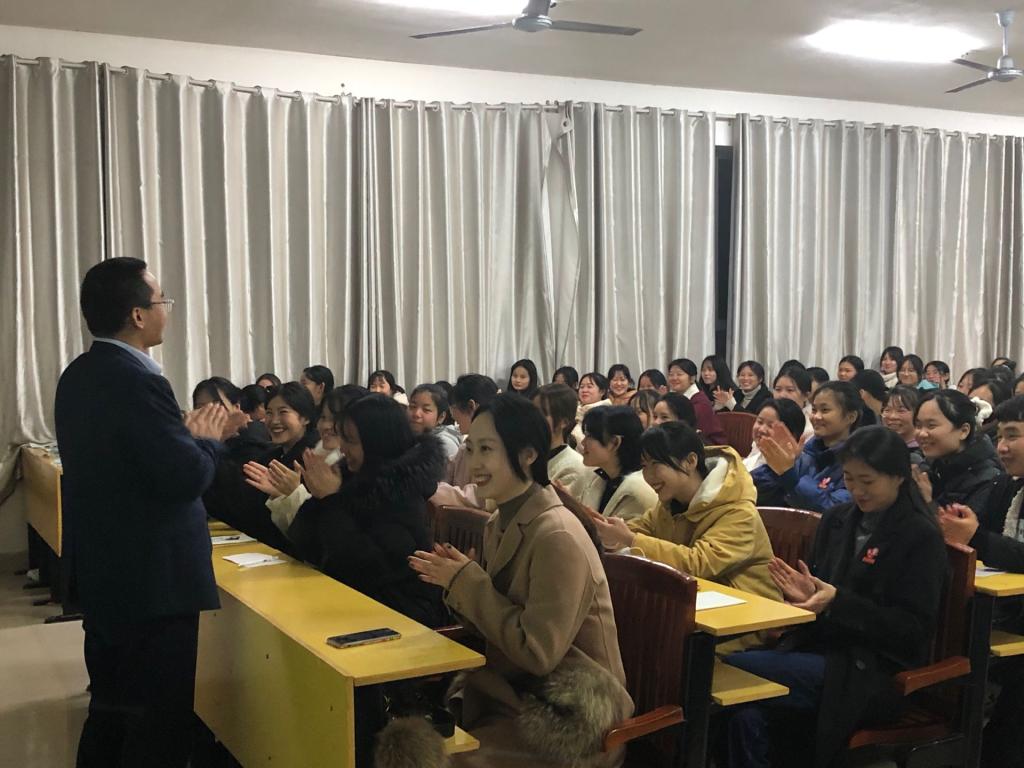 本站讯(护理学院 李珊 学生记者 彭笑笑)为进一步提高青年志愿者的综合素质,传播志愿者文化,弘扬志愿者精神,12月9日晚,护理学院在四教楼510召开了青年志愿者协会新成员培训会。护理学院副院长张蔺珊、团总支书记钟佩芹和94名志愿者协会新成员参加了培训会。