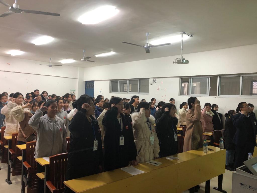 首先,张蔺珊向新加入的志愿者协会成员表示热烈欢迎,并要求新成员们积极参与志愿服务工作、发扬志愿服务精神,鼓励大家将志愿者服务落实到学习和生活中。钟佩芹对新成员就“如何做好一名志愿者”作了具体的要求并与新成员分享了自己在青年志愿者协会的工作点滴。随后,张蔺珊带领全体成员进行了庄严的宣誓。
