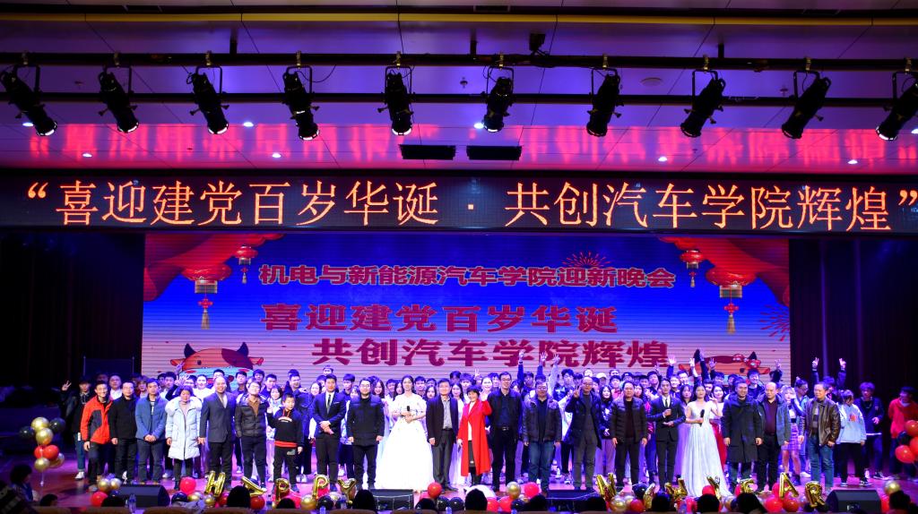本站讯 (机电与新能源汽车学院 周勤 学生记者 朱安可)12月24日晚,机电与新能源汽车学院在科技综合楼二楼学术报告厅举办了以“喜迎建党百岁华诞共创汽车学院辉煌”为主题的2020年迎新晚会。出席本次晚会的有汽车学院院长丁国香、继续教育学院副院长文灏、汽车学院党总支副书记宋秋奴、副院长吴东平等行政人员及各班班主任。
