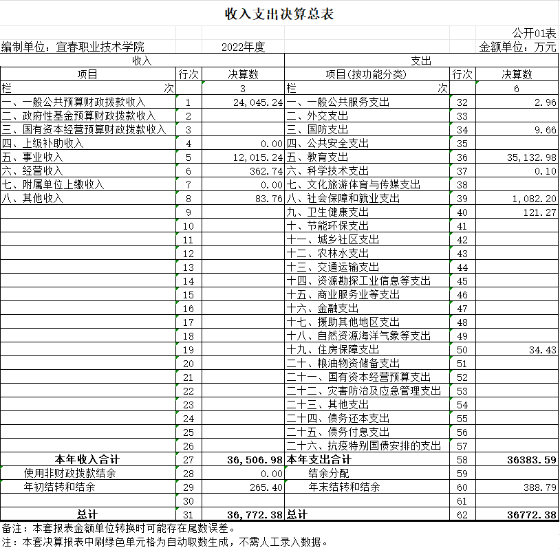 本部门2022年度收入总计36772.38万元,其中年初结转和结余265.4万元,较2021年减少7383.66万元,下降96.53%;本年收入合计36506.98万元,较2021年增加2218.81万元,增长6.47%,主要原因是:新校区搬迁完工项目加紧支付。