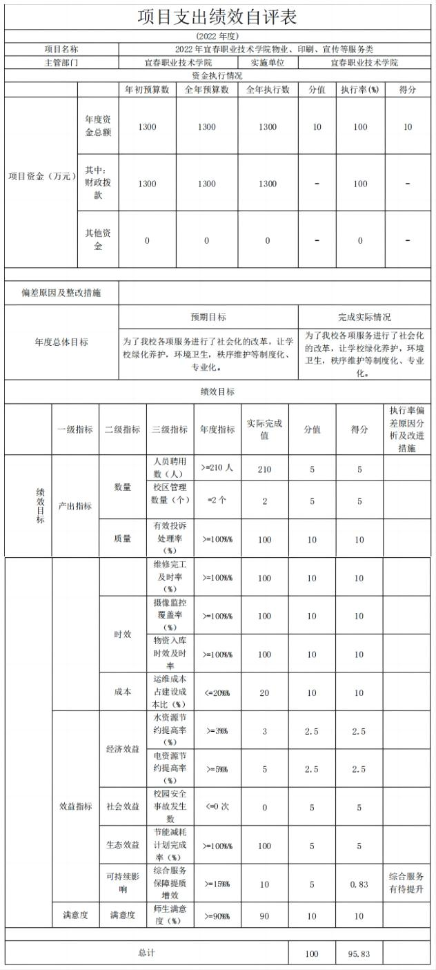 组织对“中央就业补助孵化基地建设补助资金项目”等1个项目开展了部门评价,涉及一般公共预算支出100万元,政府性基金预算支出0万元,国 有资本预算支出0万元。从评价情况来看,物业管理服务更加专业化规范化,校园环境更加优美,师生及家长的满意度高,提升校园形象更具吸引力。
