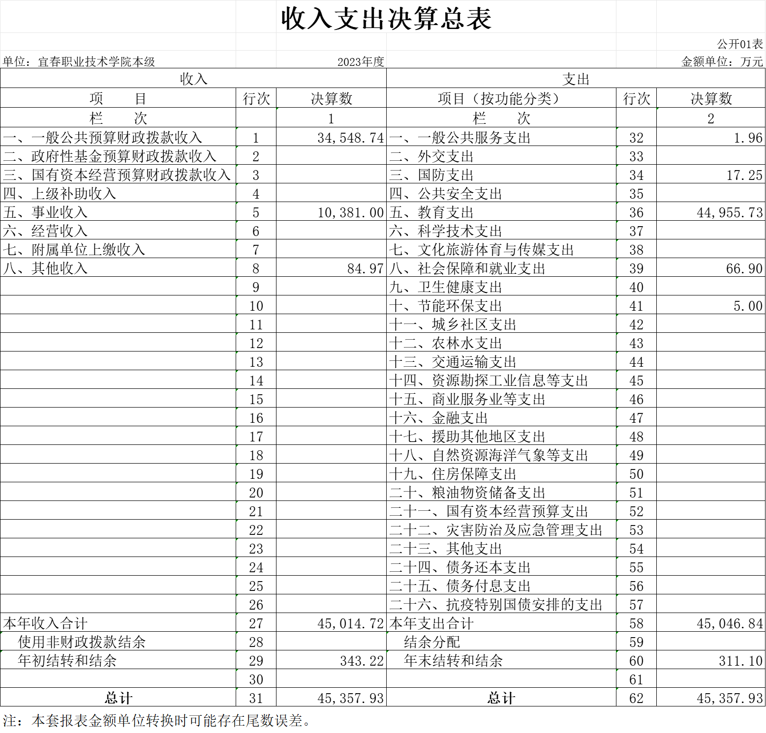 本单位2023年度收入总计45357.93万元,其中年初结转和结余343.22万元,比上年增加128.70万元,增长60%;使用非财政拨款结余和专用结余0万元,比上年增加(减少)0万元,增长(下降)0%;本年收入合计45014.72万元,比上年增加9810.93万元,增长27.87%,主要原因:为满足新校区教学需求进行了大量设备采购。