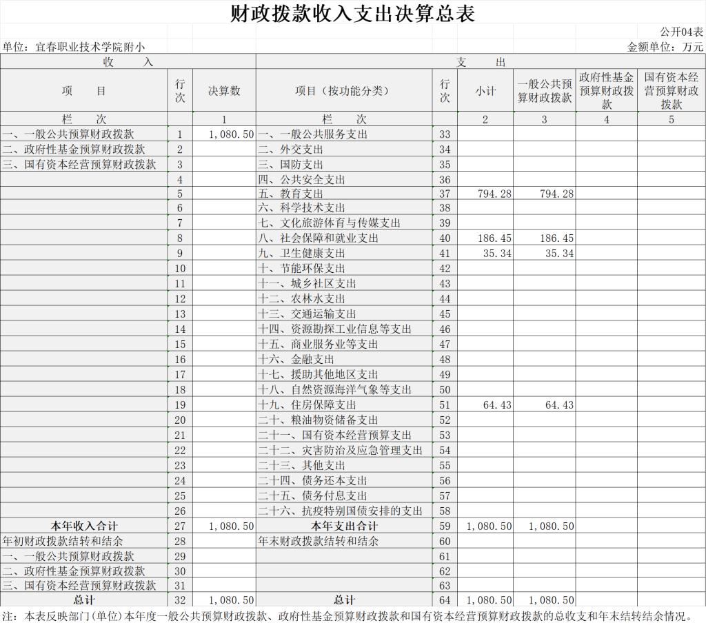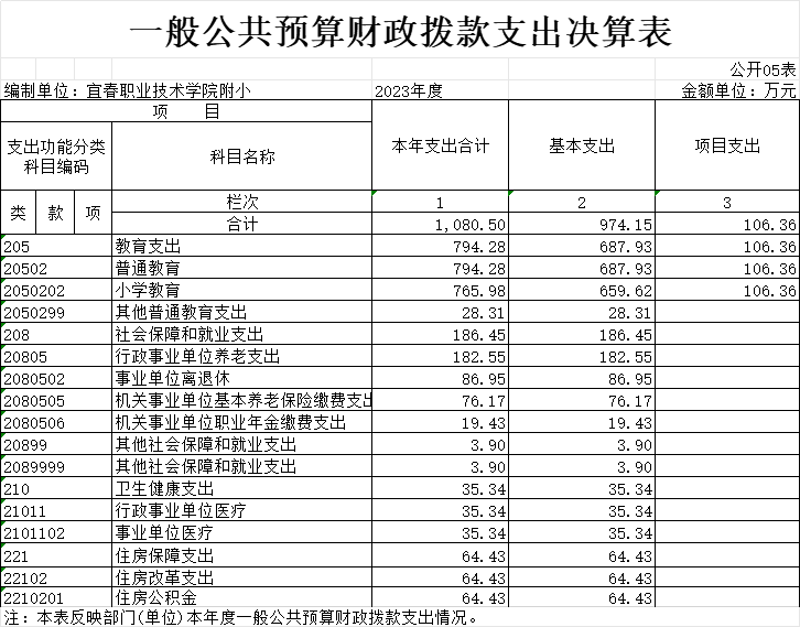 本单位2023年度财政拨款本年支出年初预算数1080.50万元,决算数1080.50万元,完成年初预算的100%。其中: