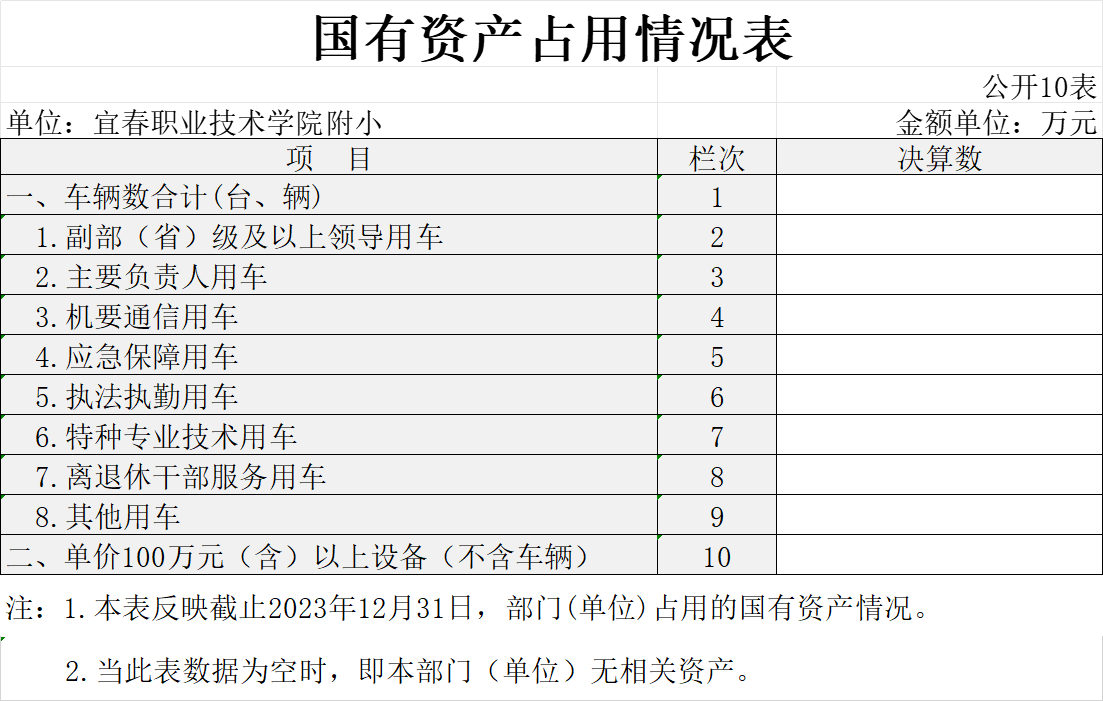 截止2023年12月31日,本单位共有车辆0辆(台),其中:副部(省)级及以上领导用车0辆、主要负责人用车0辆、机要通信用车0辆、应急保障用车0辆、执法执勤用车0辆、特种专业技术用车0辆、离退休干部服务用车0辆、其他用车0辆,其他用车主要是用于:无其他用车。本单位单价50万元(含)以上设备(不含车辆)0台(套)。