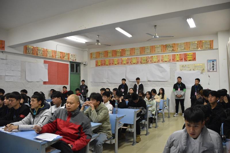 (本站讯机电与新能源汽车学院周勤学生记者陈小龙)为了积极推动我院精神文明建设,充分展示我院学生积极向上的健康风貌,为我院学子提供展现魅力的舞台。11月25日晚,机电与新能源汽车学院权益部与宣传部所组织的歌手大赛在第一教学楼x801隆重举行,大赛邀请了机电与新能源汽车学院团总支书记周勤、辅导员杨张海两位老师以及校学生会的3位同学担任评委。