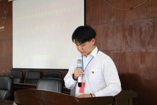 首先宣布本届双代会选举结果。根据计票结果,彭思文、潘宇晨、陈江良当选机电与新能源学院新一届团总支委员会委员;彭思文、潘宇晨、陈江良当选学生会主席团成员,熊文轩、潘瑜芳、黎紫慧、刘鑫当选机电与新能源学院新一届学生会部门负责人。