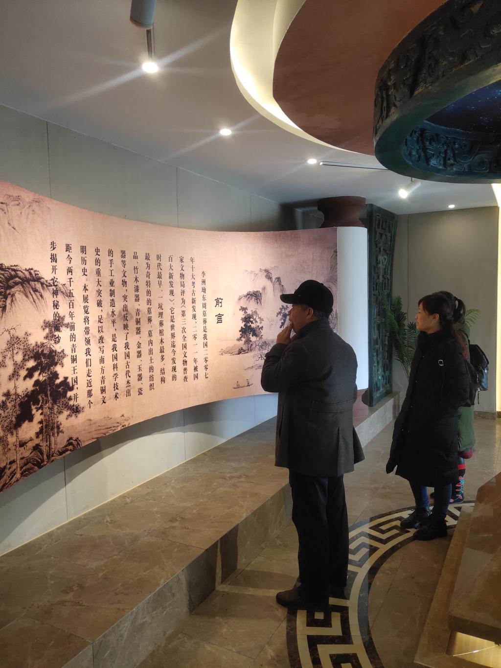 参观结束党员们驱车前往靖安县博物馆,参观李洲坳东周墓葬考古展。李洲坳东周墓葬的考古发掘,为我们展示了2500多年前东周时期赣西北地区绚丽多彩的社会生活情形,展现了一个湮没的具有高度发达纺织业的青铜文明。因为没有出土任何文字,使得李洲坳东周墓葬疑团众多,留下许多悬念。